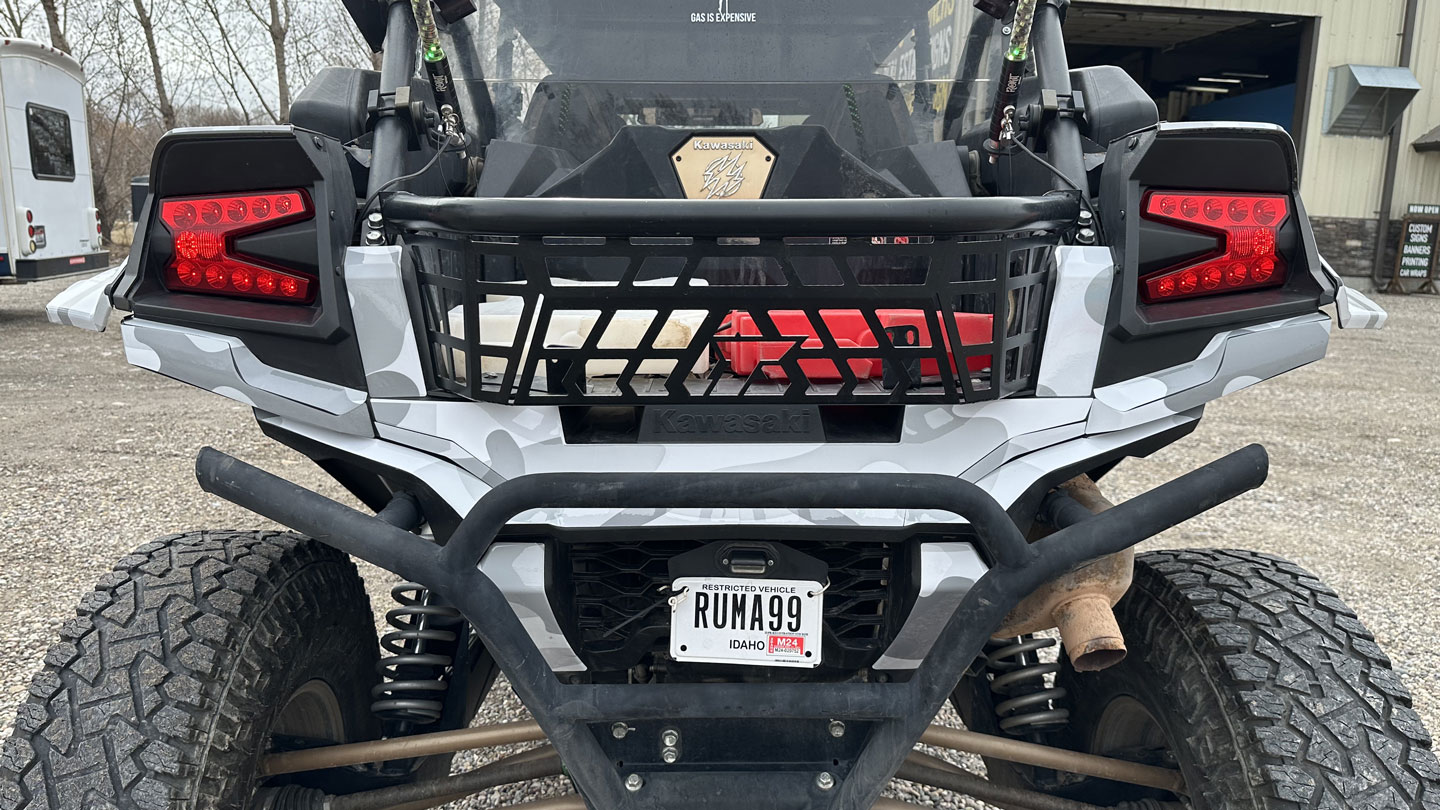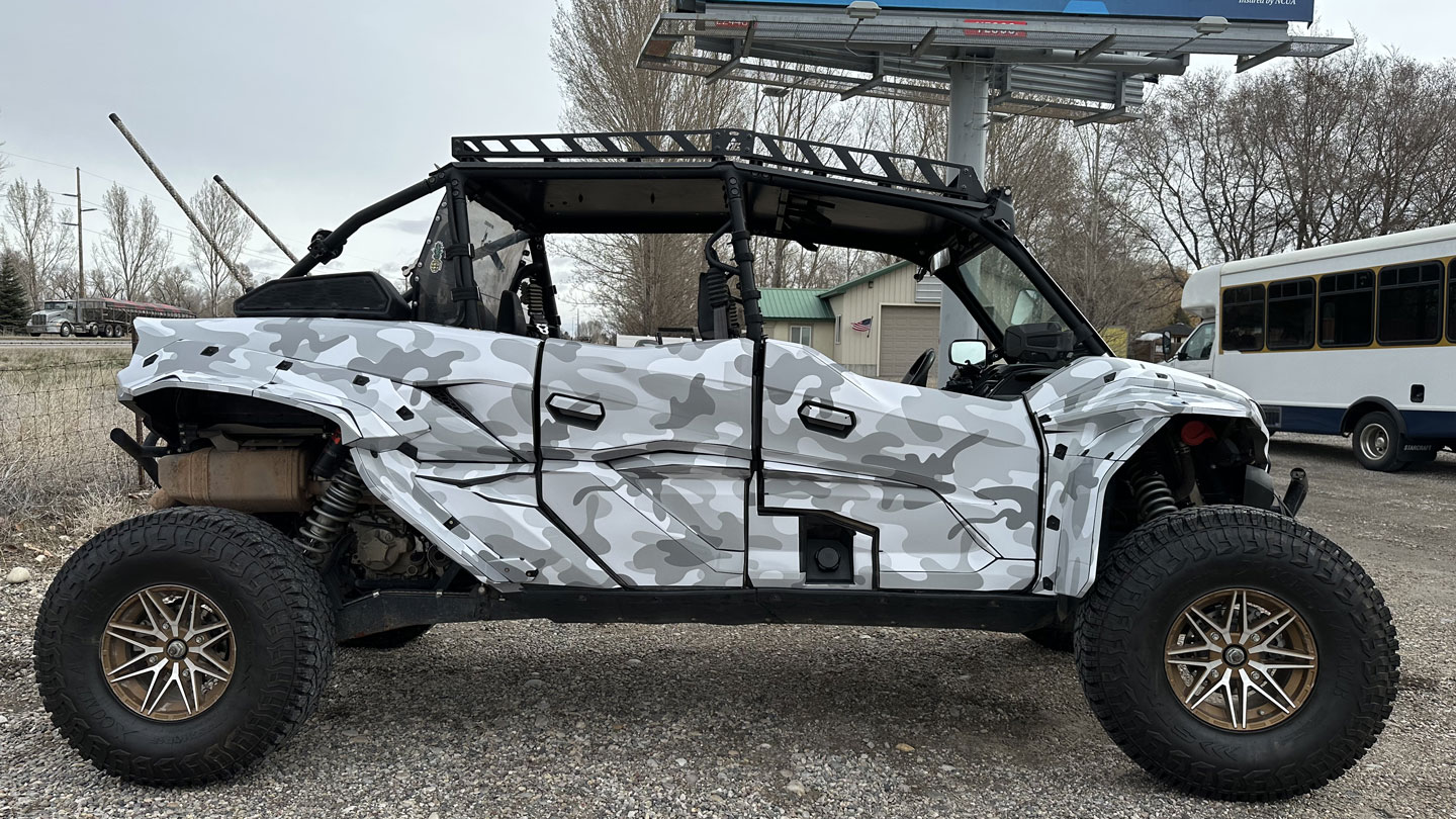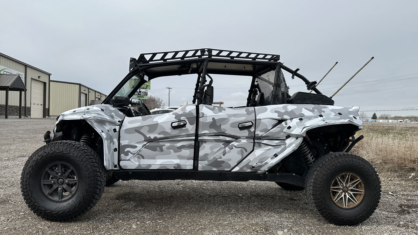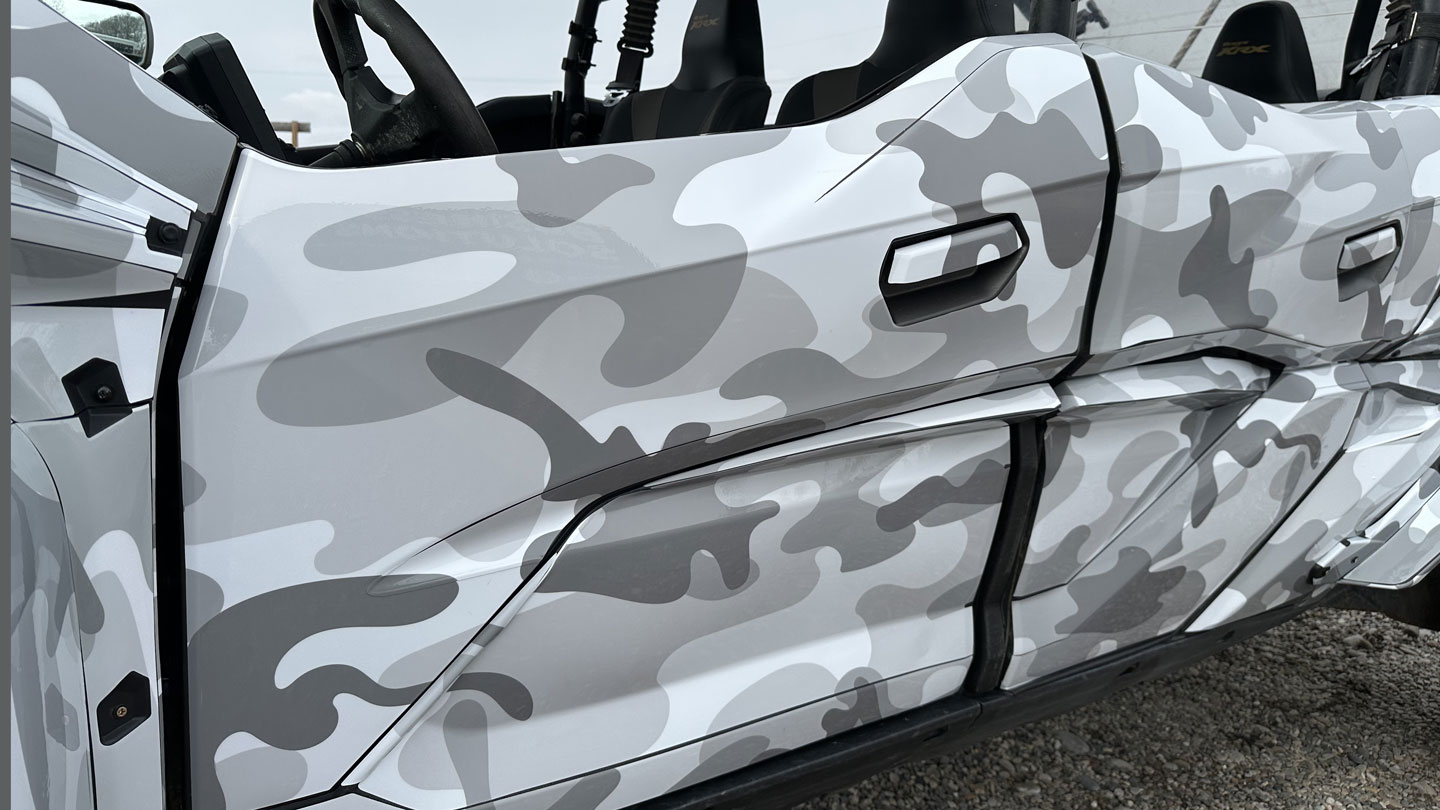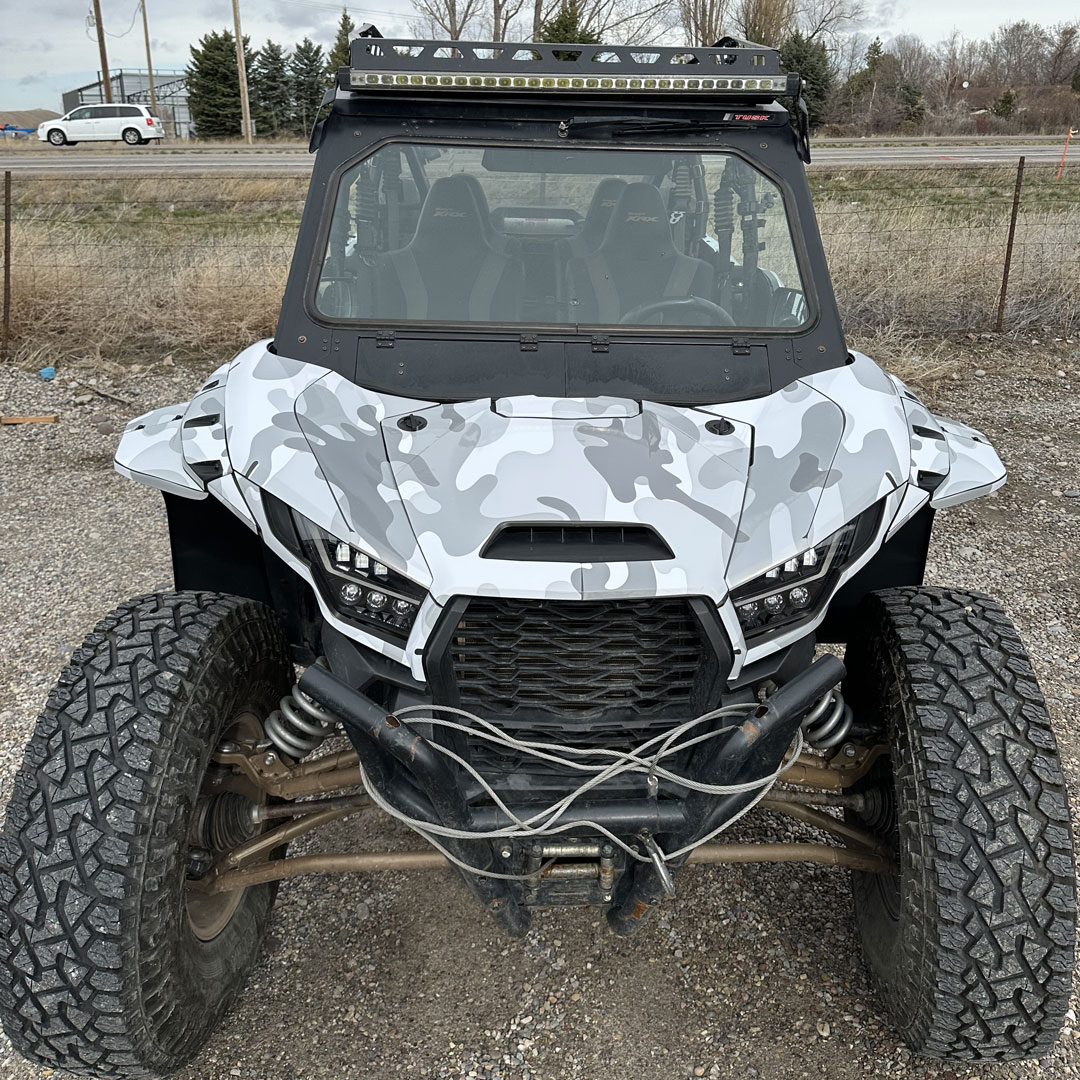 This Kawasaki KRX1000 wrap showcases our striking Winter Sea Camo design—a perfect match for this powerful rig. The cool tones and flowing camo pattern give it a rugged yet refined look that stands out in any environment. Built for adventure and styled for impact, this wrap perfectly balances toughness with clean, modern aesthetics. It’s proof that the right design can take any ride from capable to completely custom.